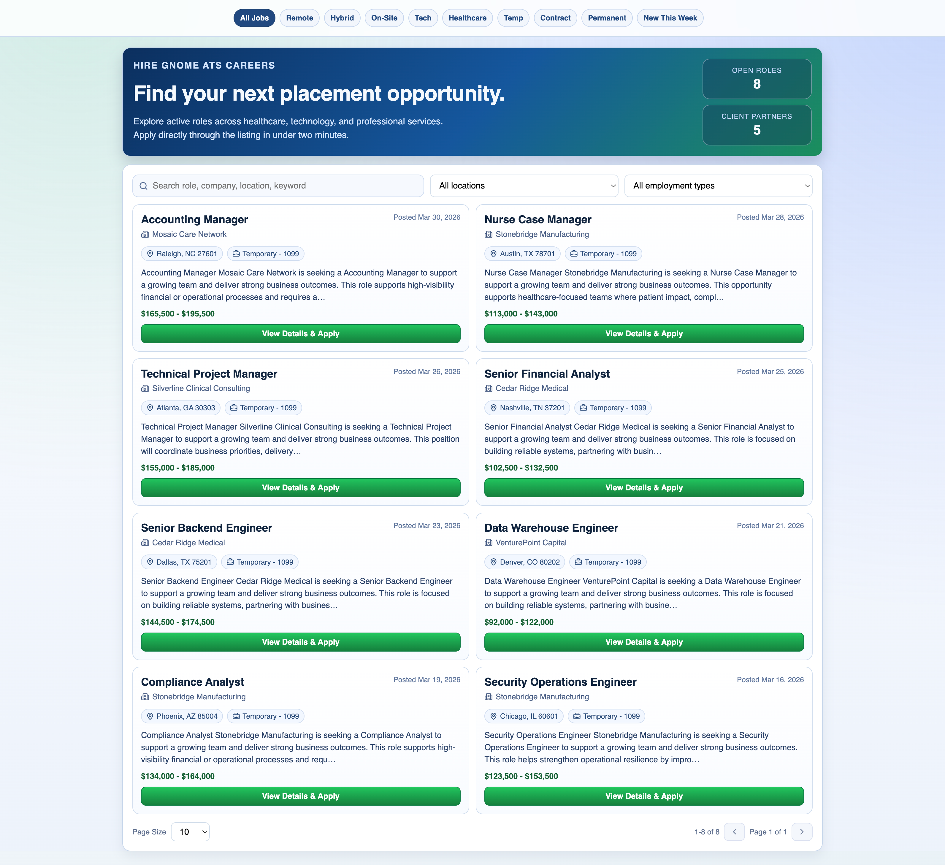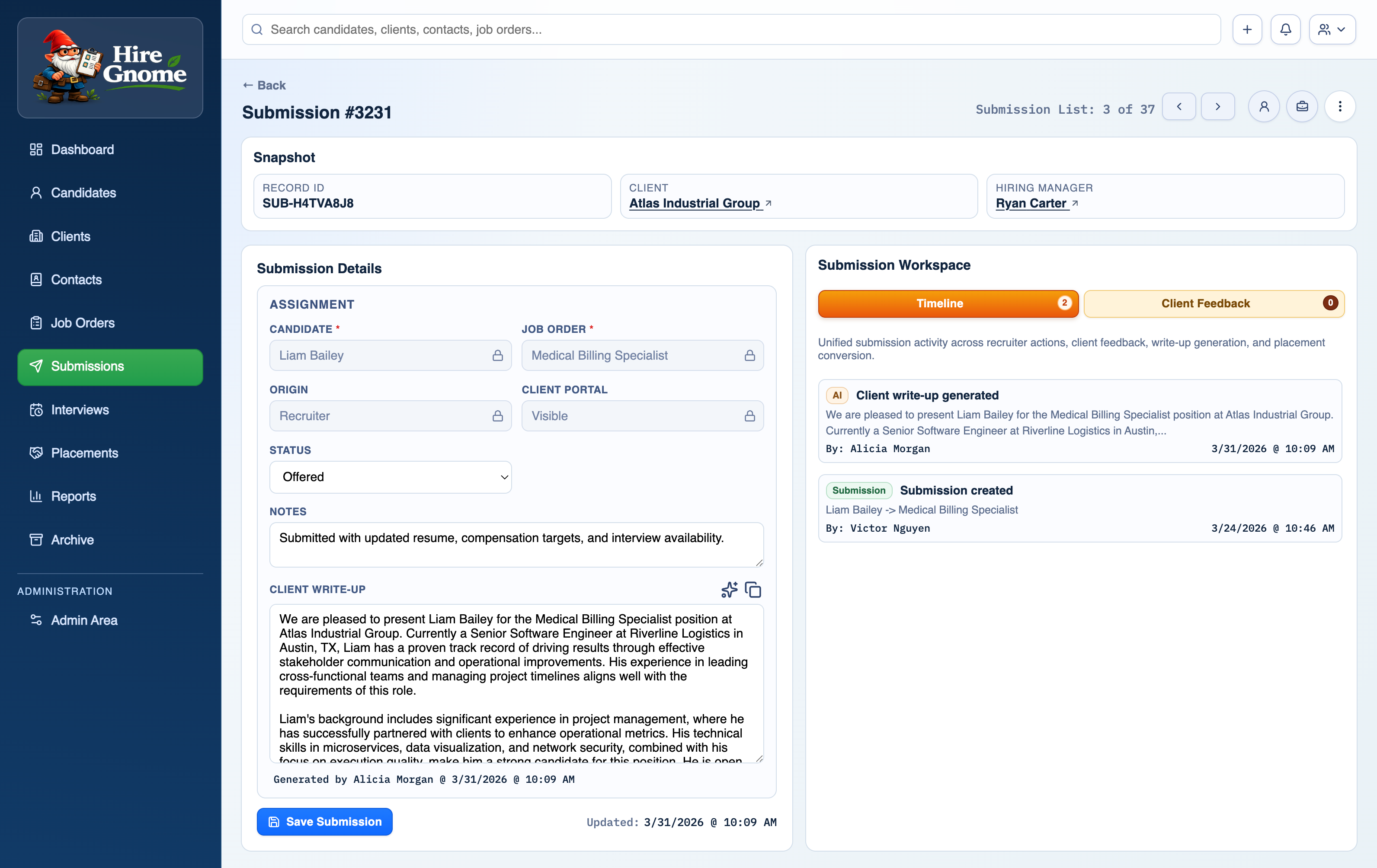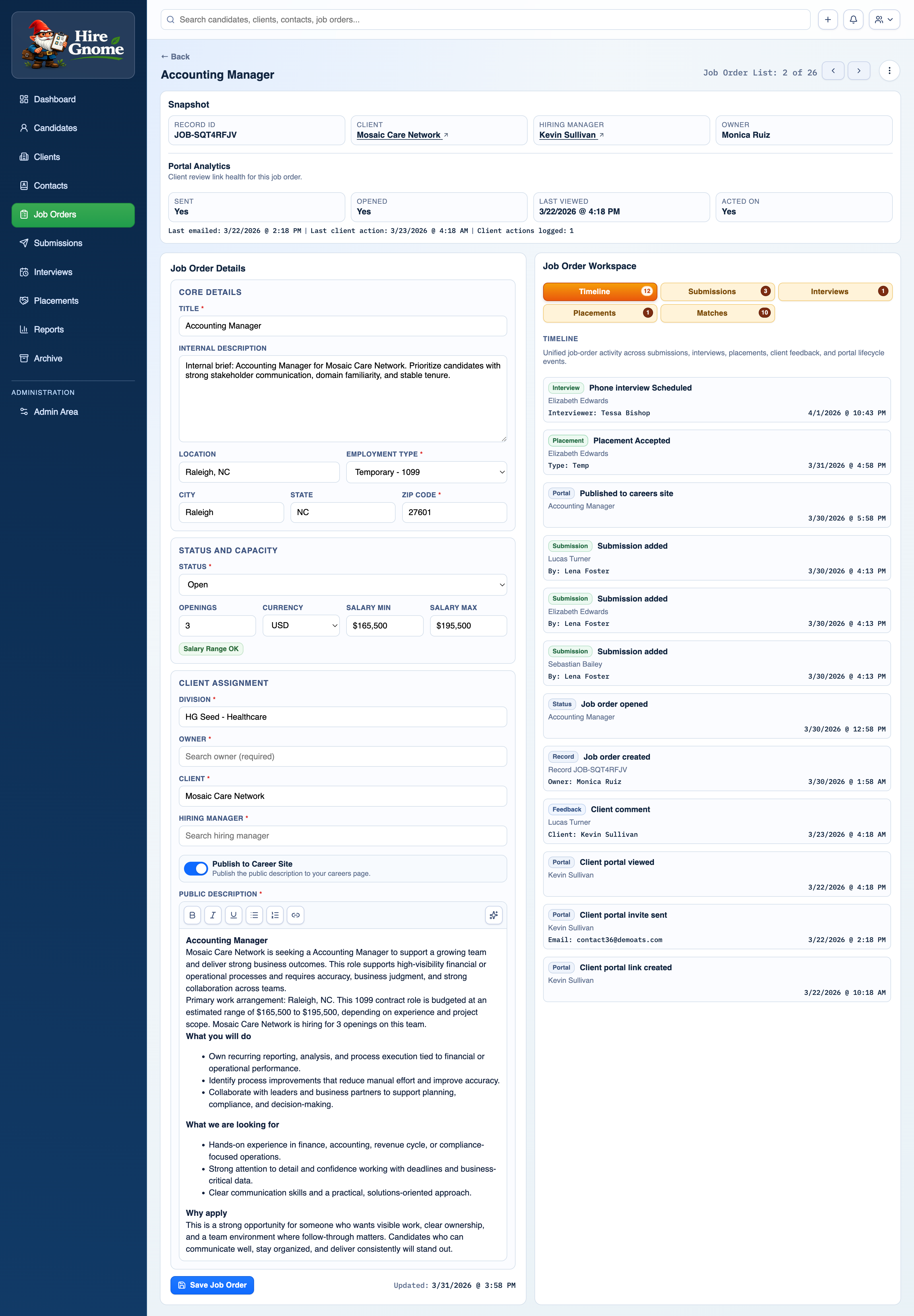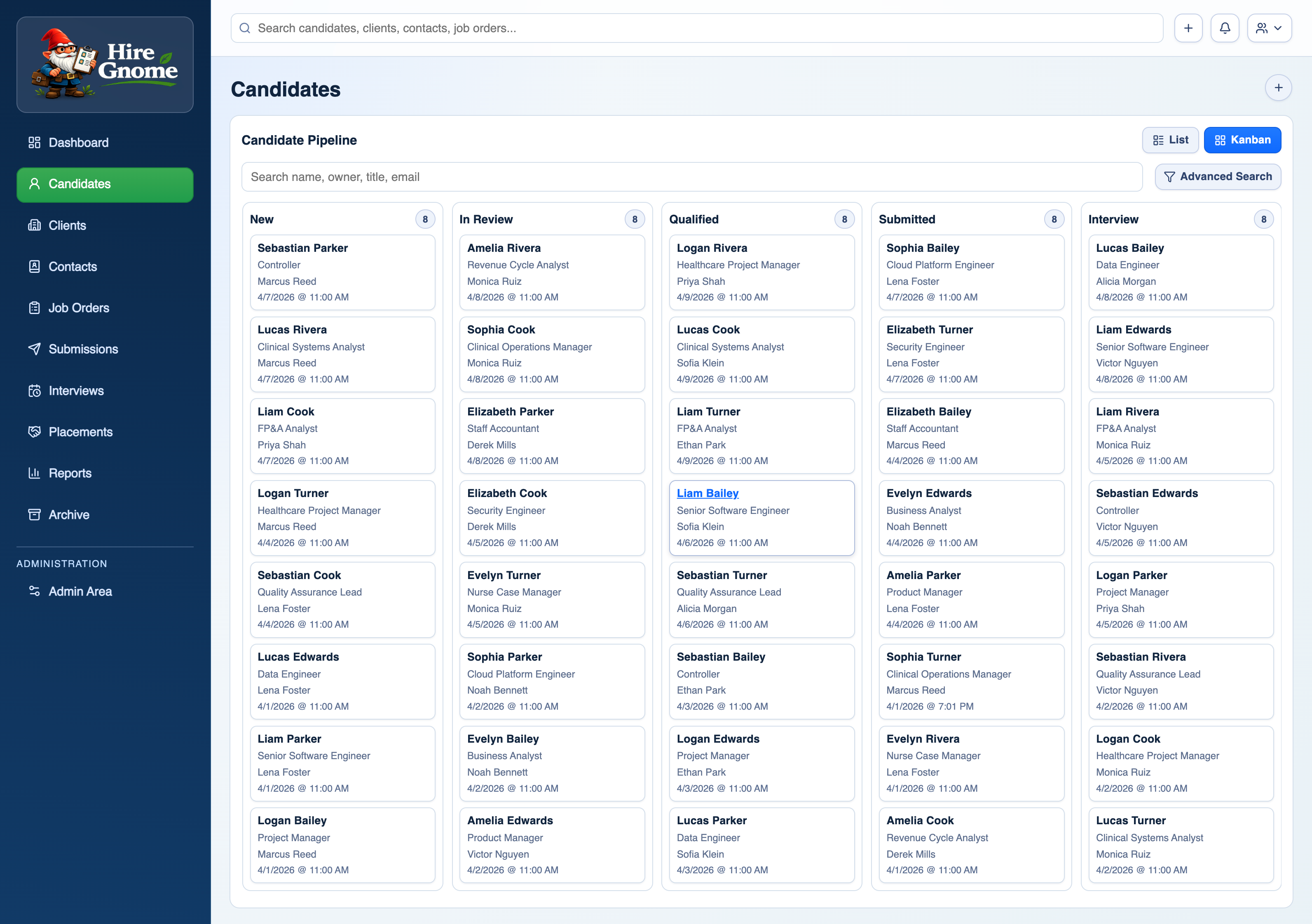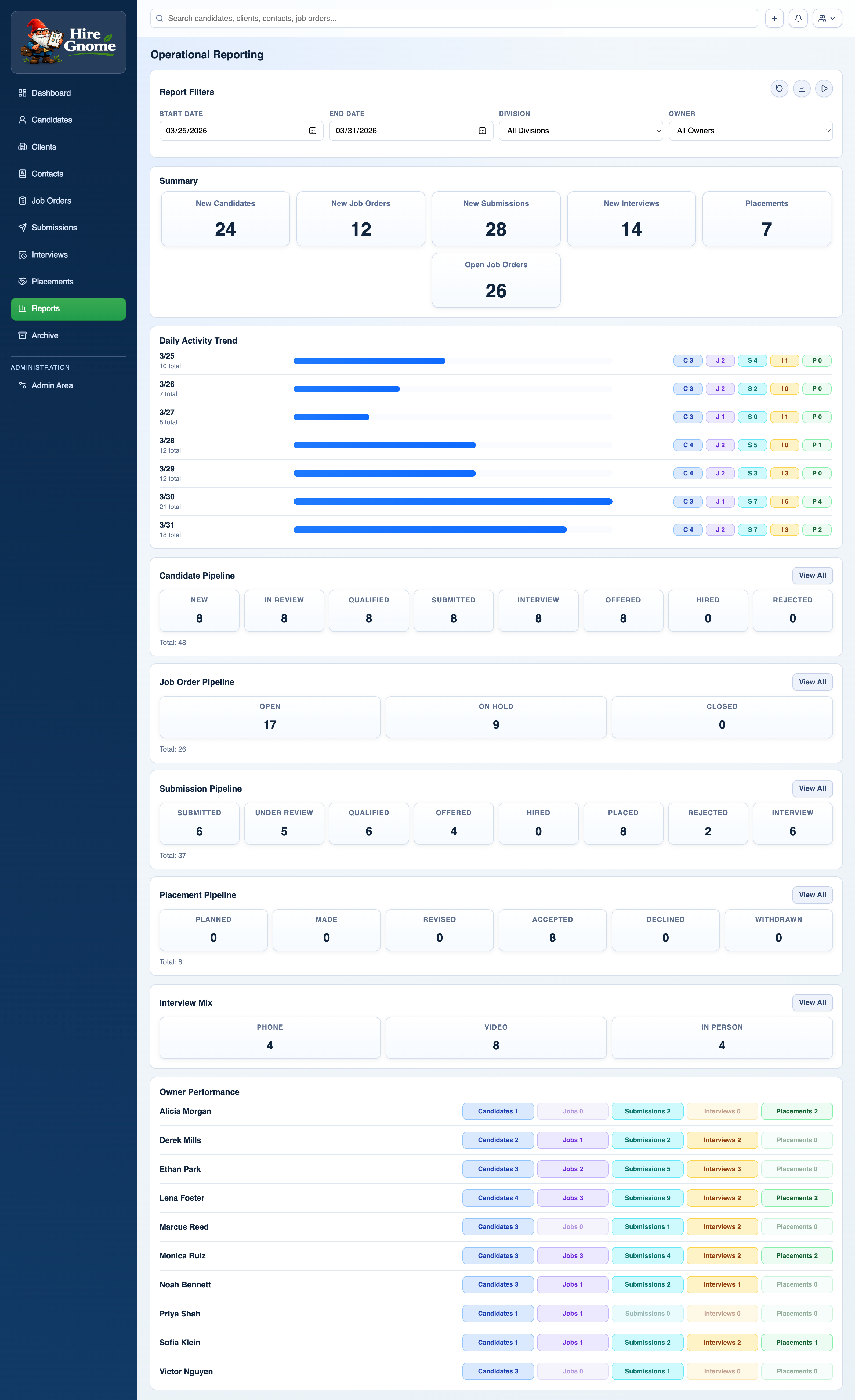 Hire Gnome is a full-featured recruiting ATS built on Next.js, Prisma, and MySQL. Candidate pipeline, AI resume parsing, operational reporting, a public career site, placements tracking — and it's open source.